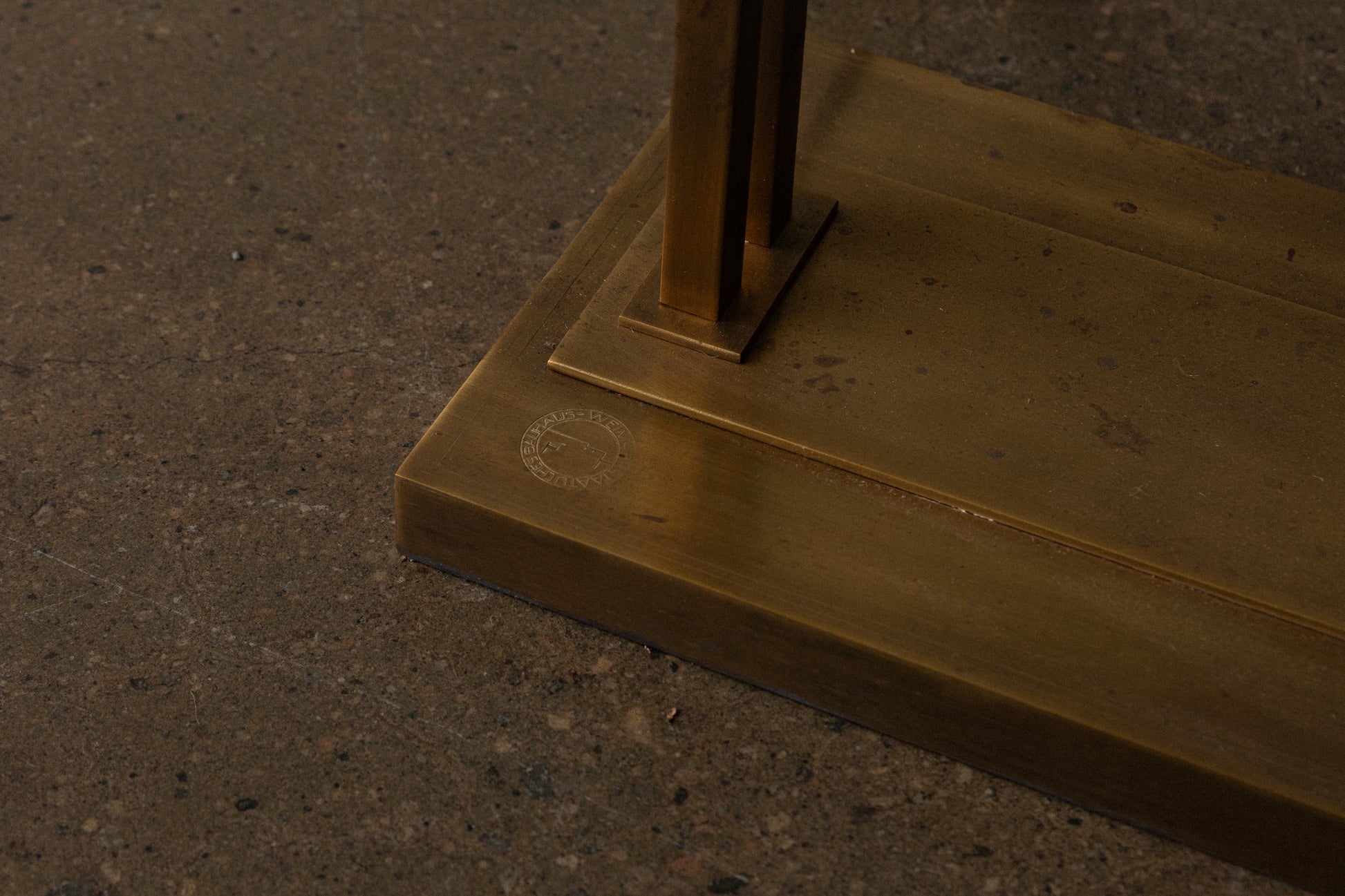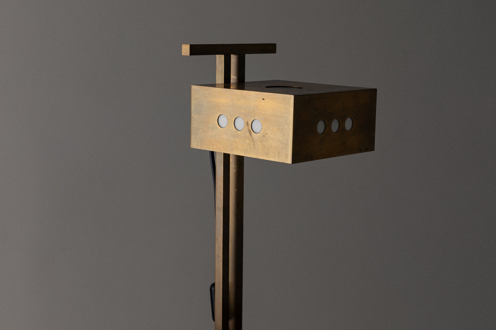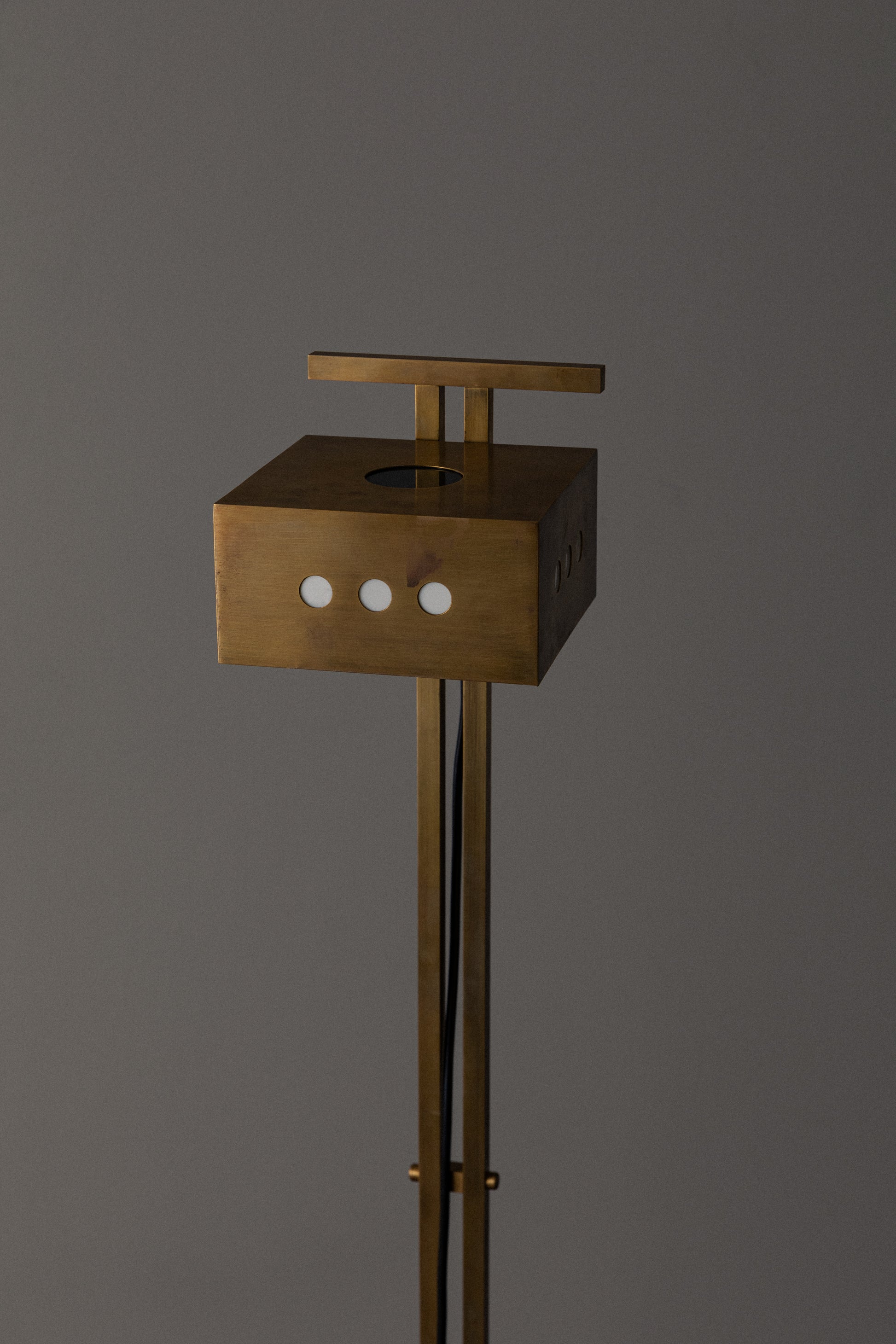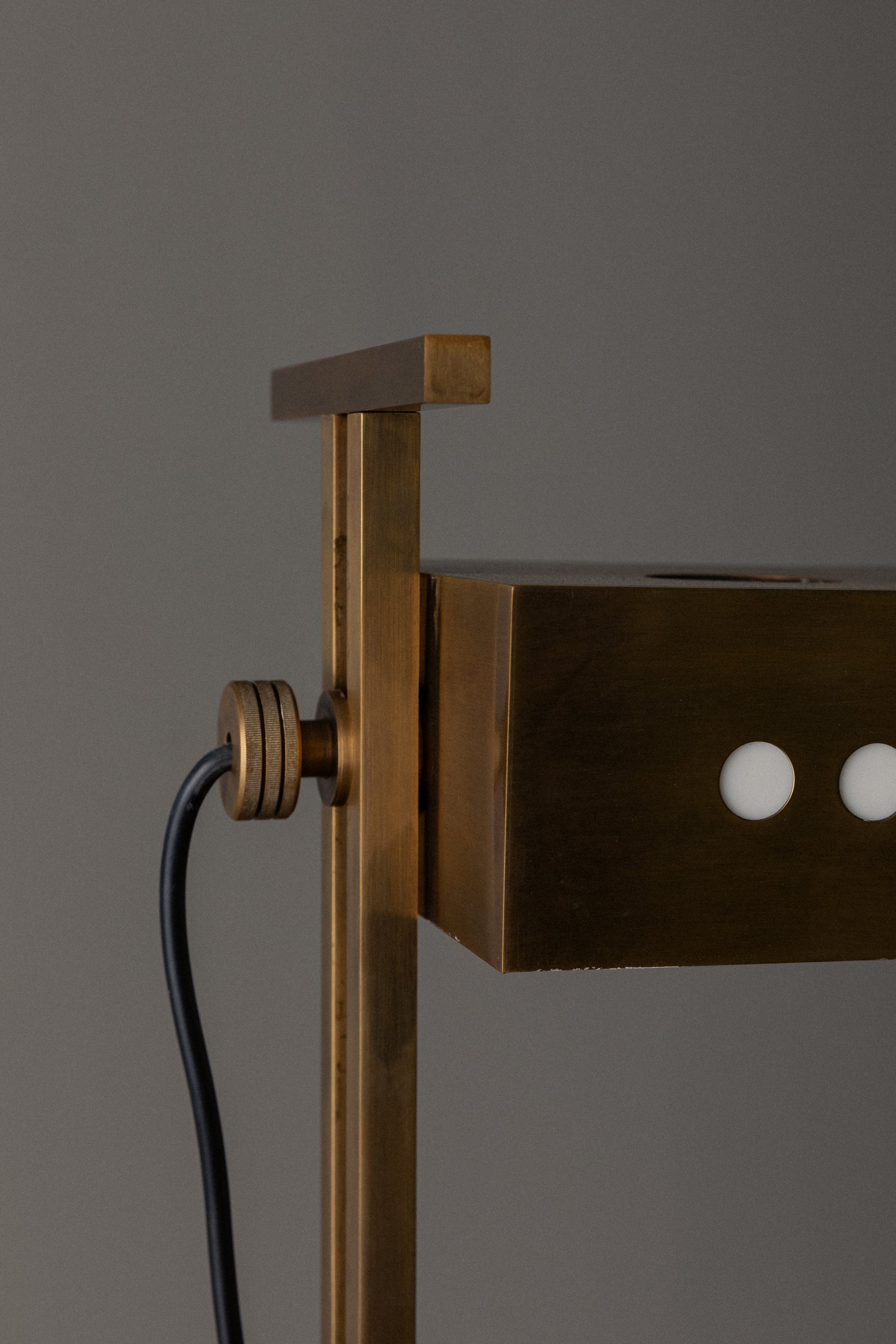 Inspired by the clean lines and functional elegance of the Bauhaus movement, this Bauhaus Style Brass Lamp features a minimalist, geometric design that exudes timeless sophistication. Constructed from solid brass, the lamp combines form and function with its sleek rectangular base and angular, structured arm. The ridged details and circular accents give it a subtle industrial flair, while the brass finish adds warmth and a touch of luxury.