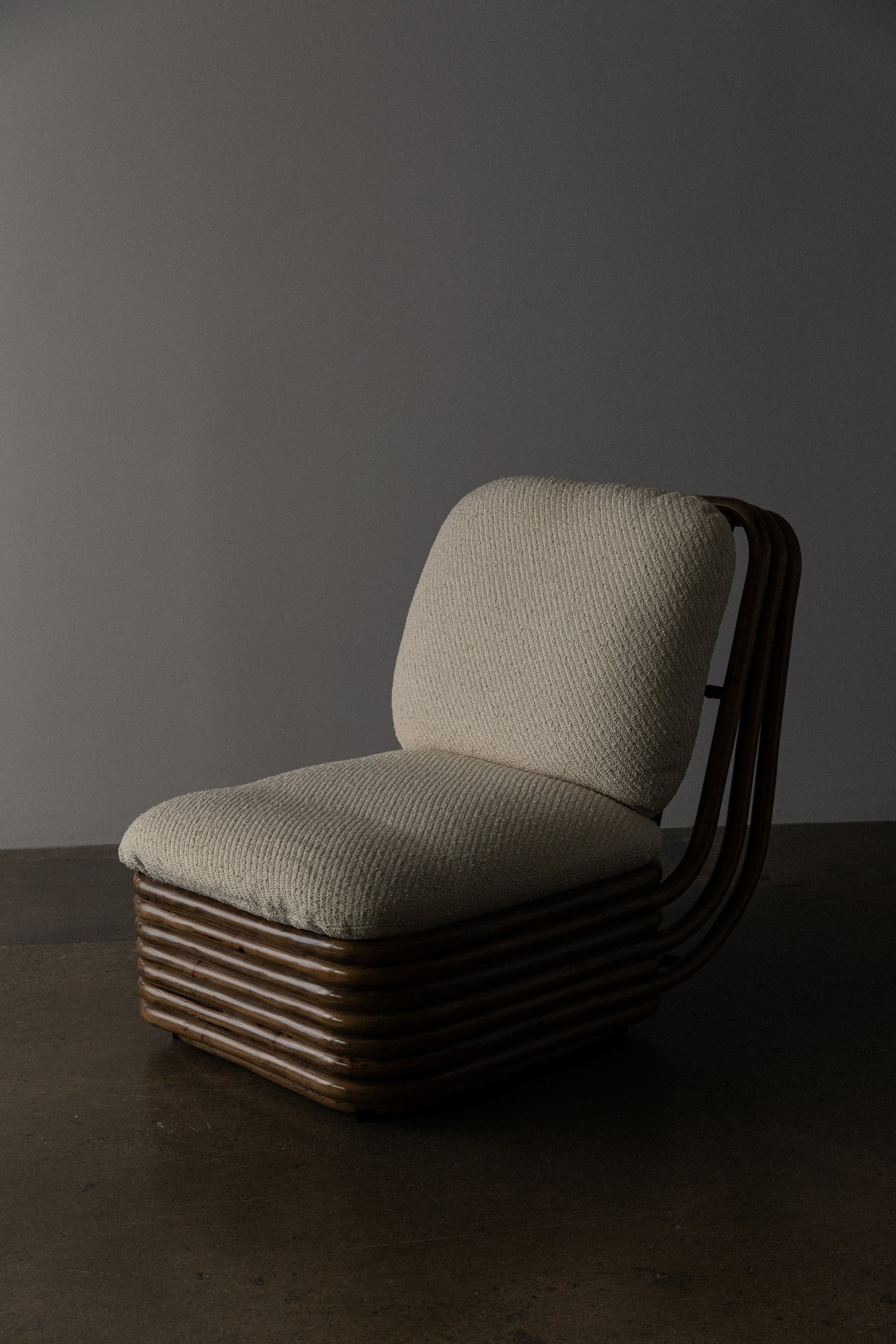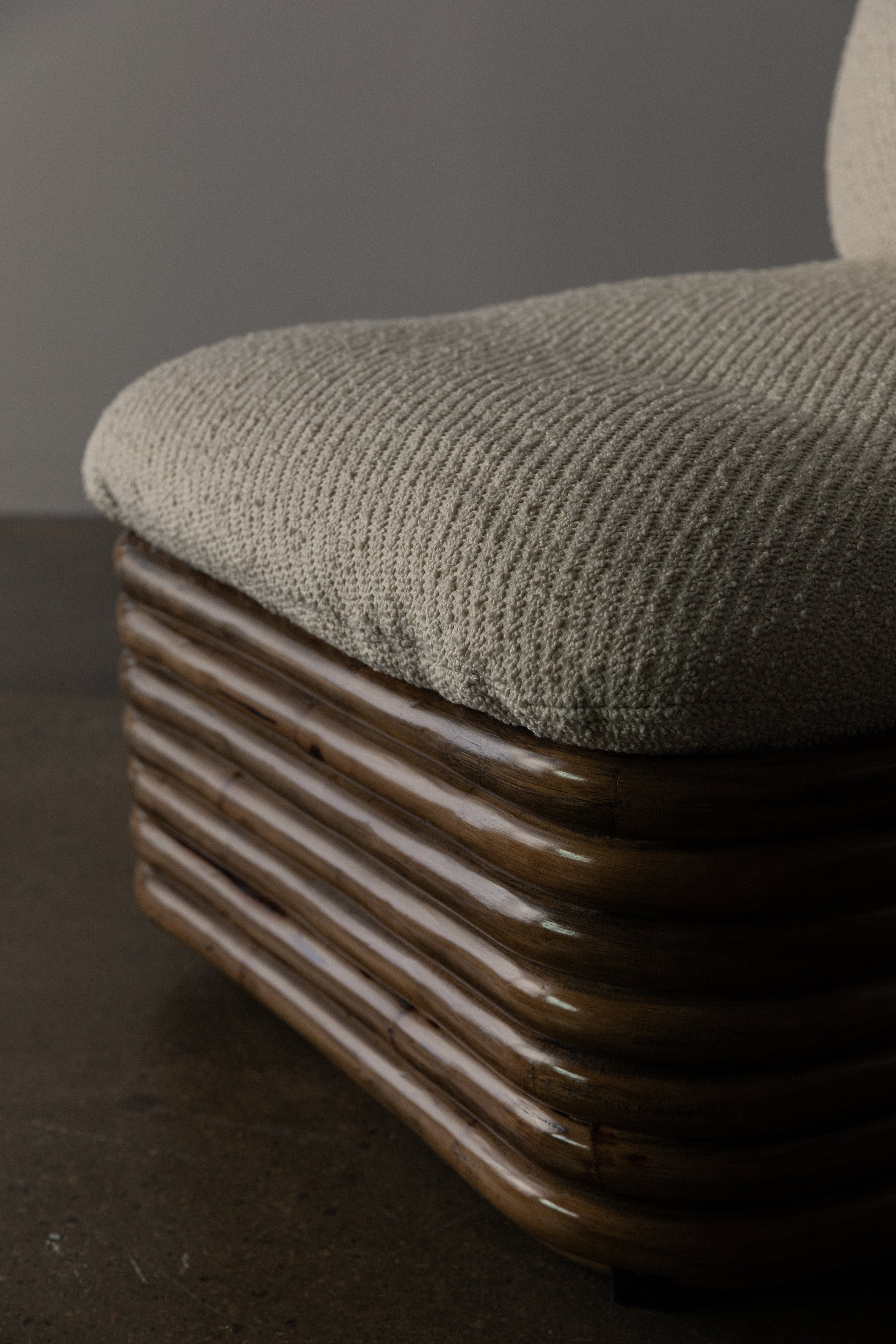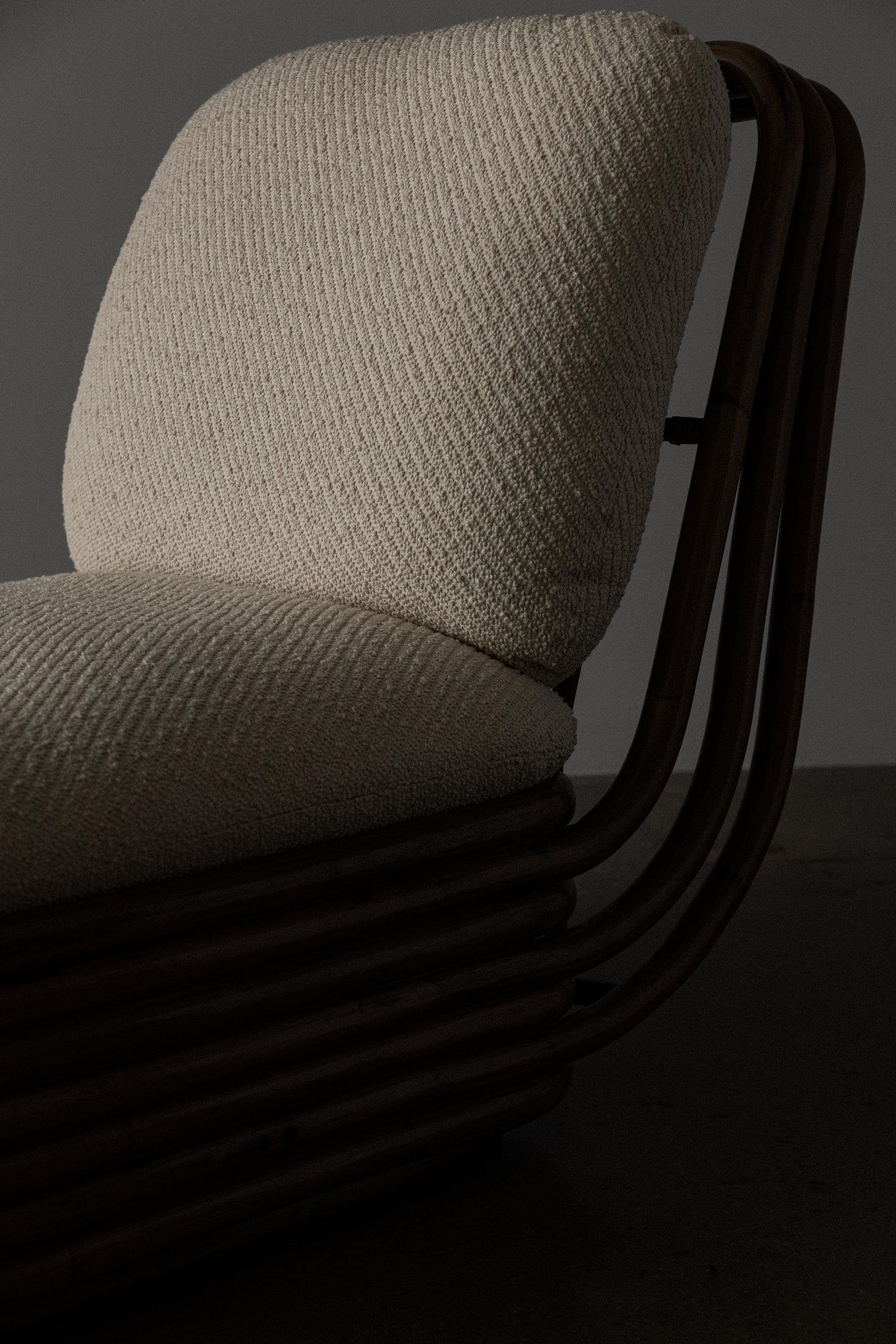 Designed by the iconic Italian designer Gabriella Crespi in the 1970s, the Bohemian 72 Lounge Chair is a masterful blend of natural materials and luxurious comfort. This timeless piece features an elegant, curved rattan frame, reflecting Crespi’s signature organic aesthetic and impeccable craftsmanship. The plush, oversized upholstered cushions provide a soft, inviting contrast to the earthy rattan, offering a perfect balance between form and function.