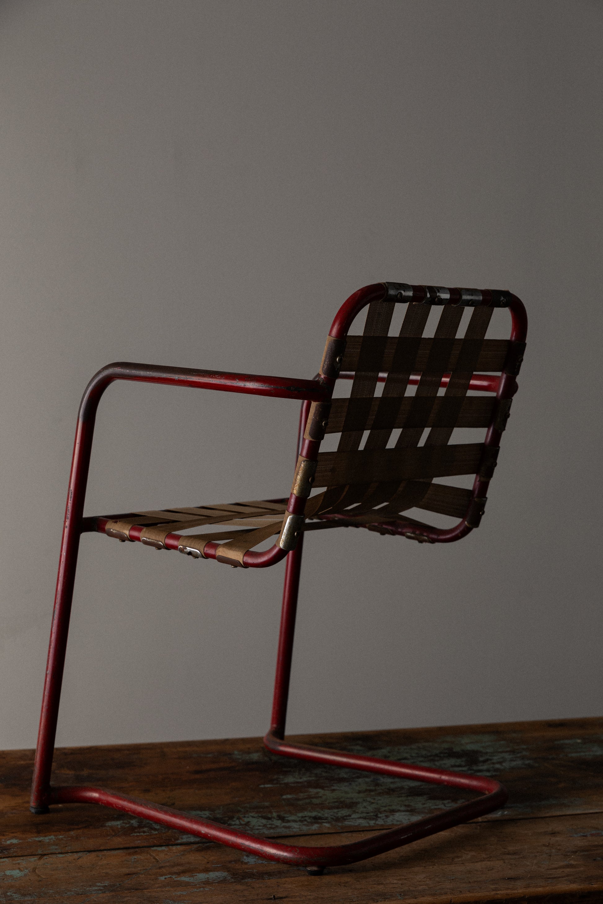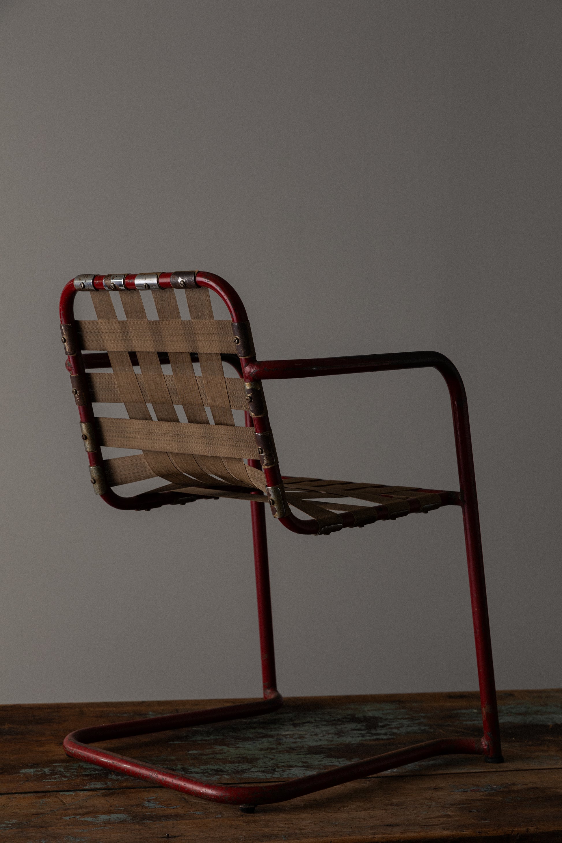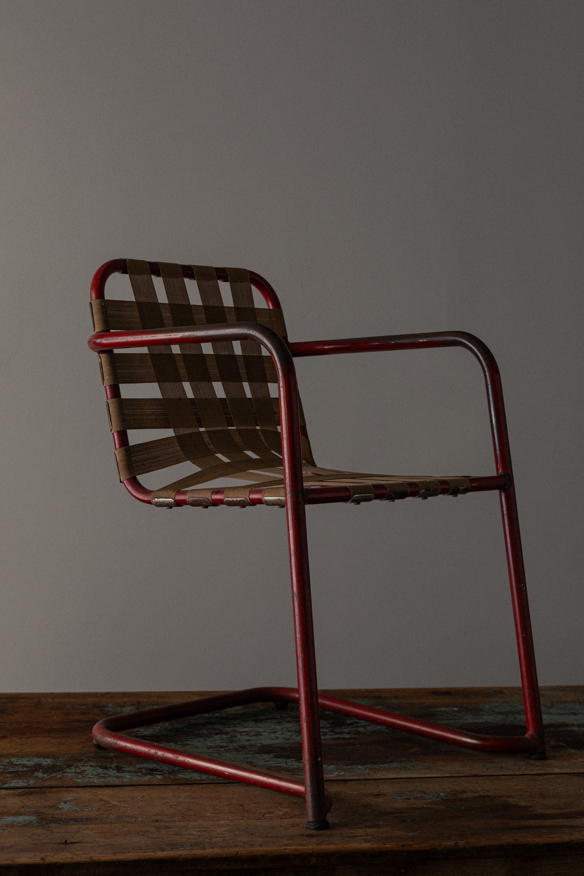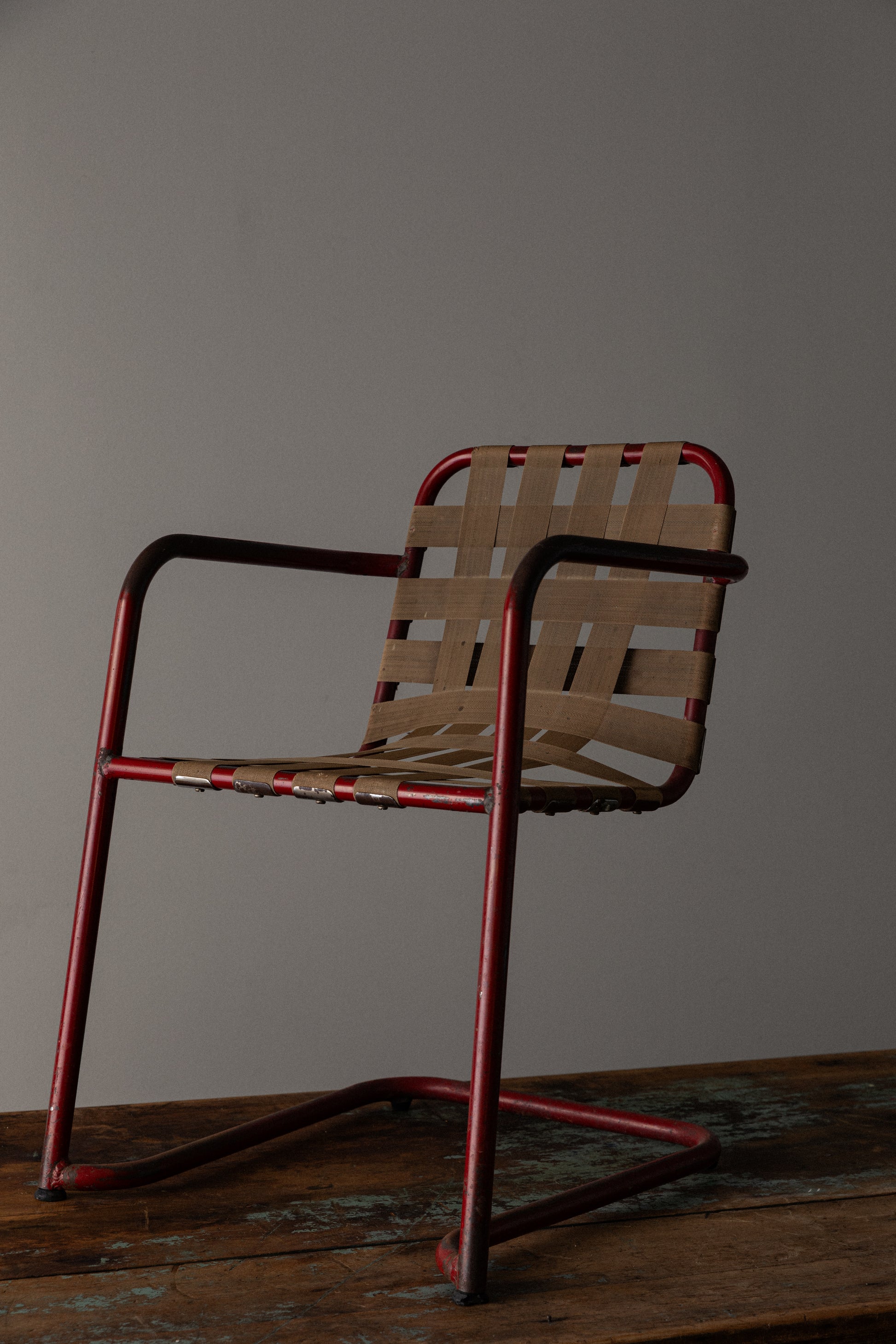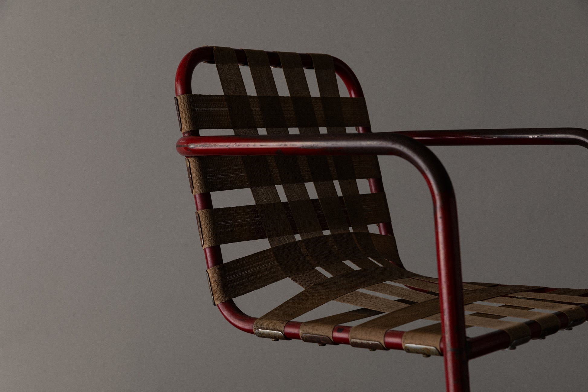 Mid-Century Webbed Chair in Red Metal Frame, c. 1950s