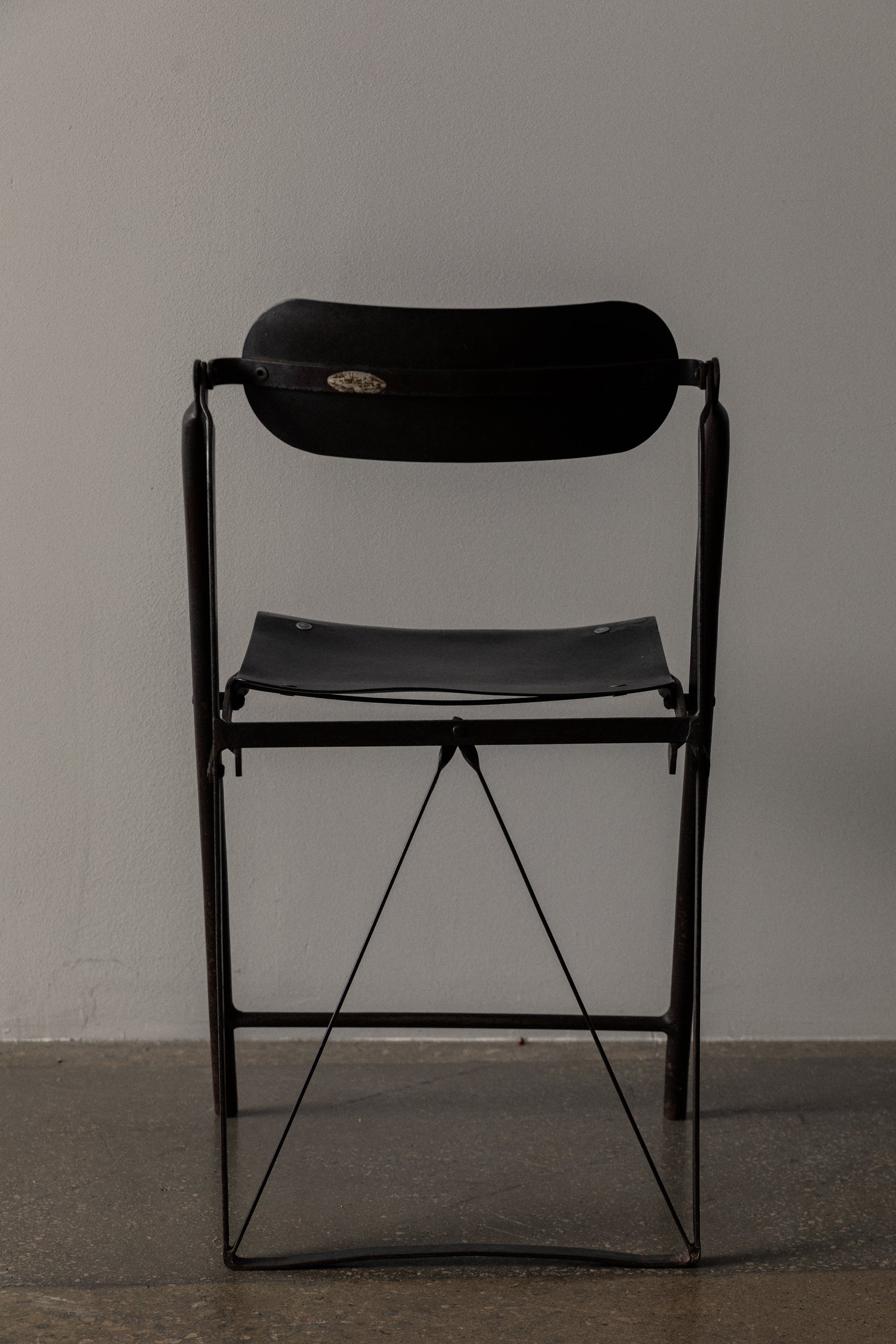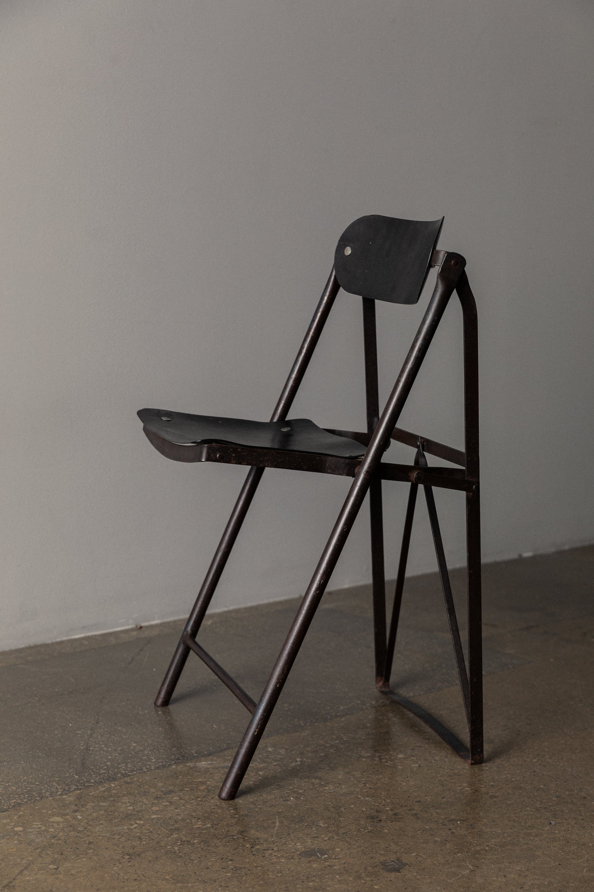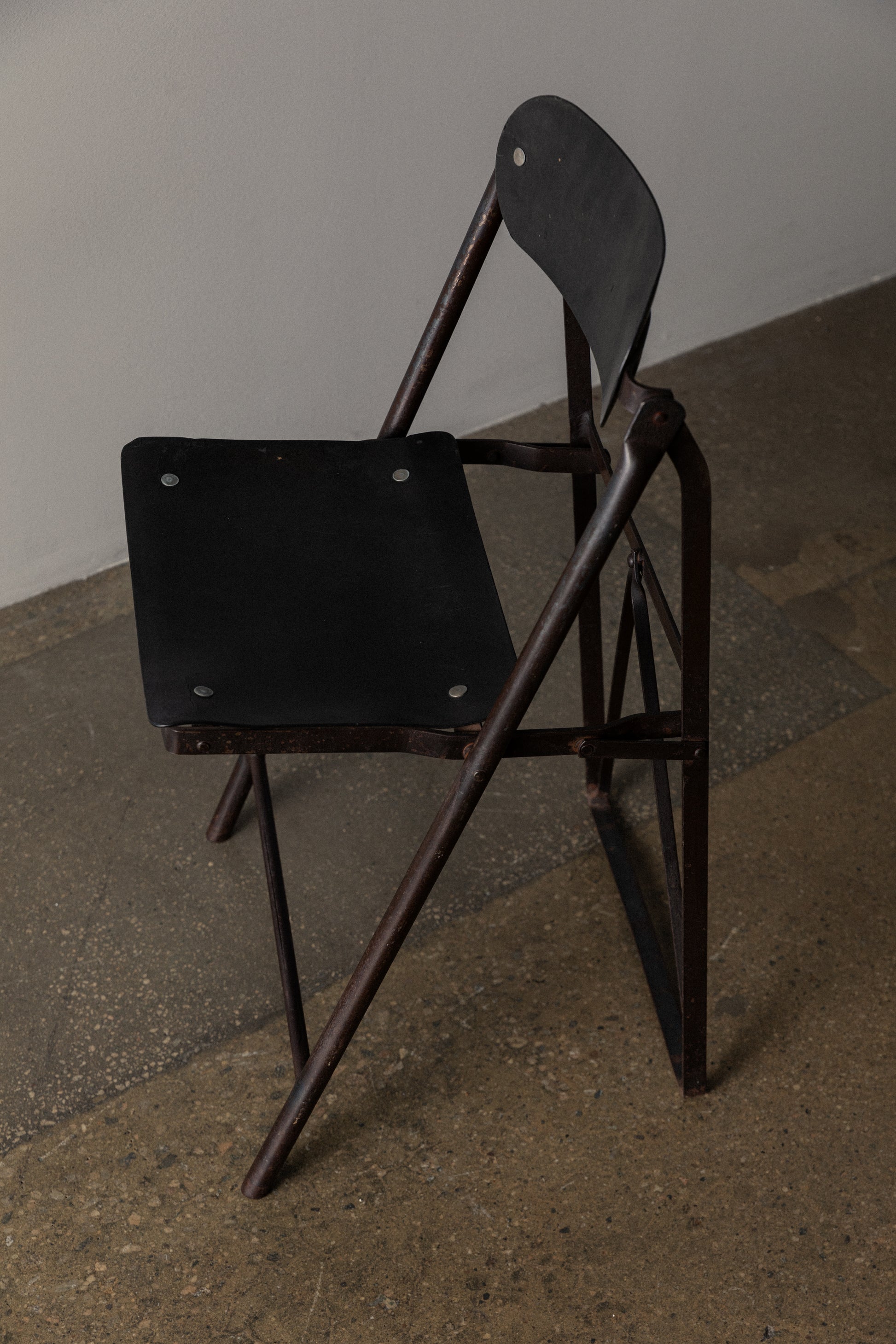 Vintage French Folding Chair in Olive Green Metal