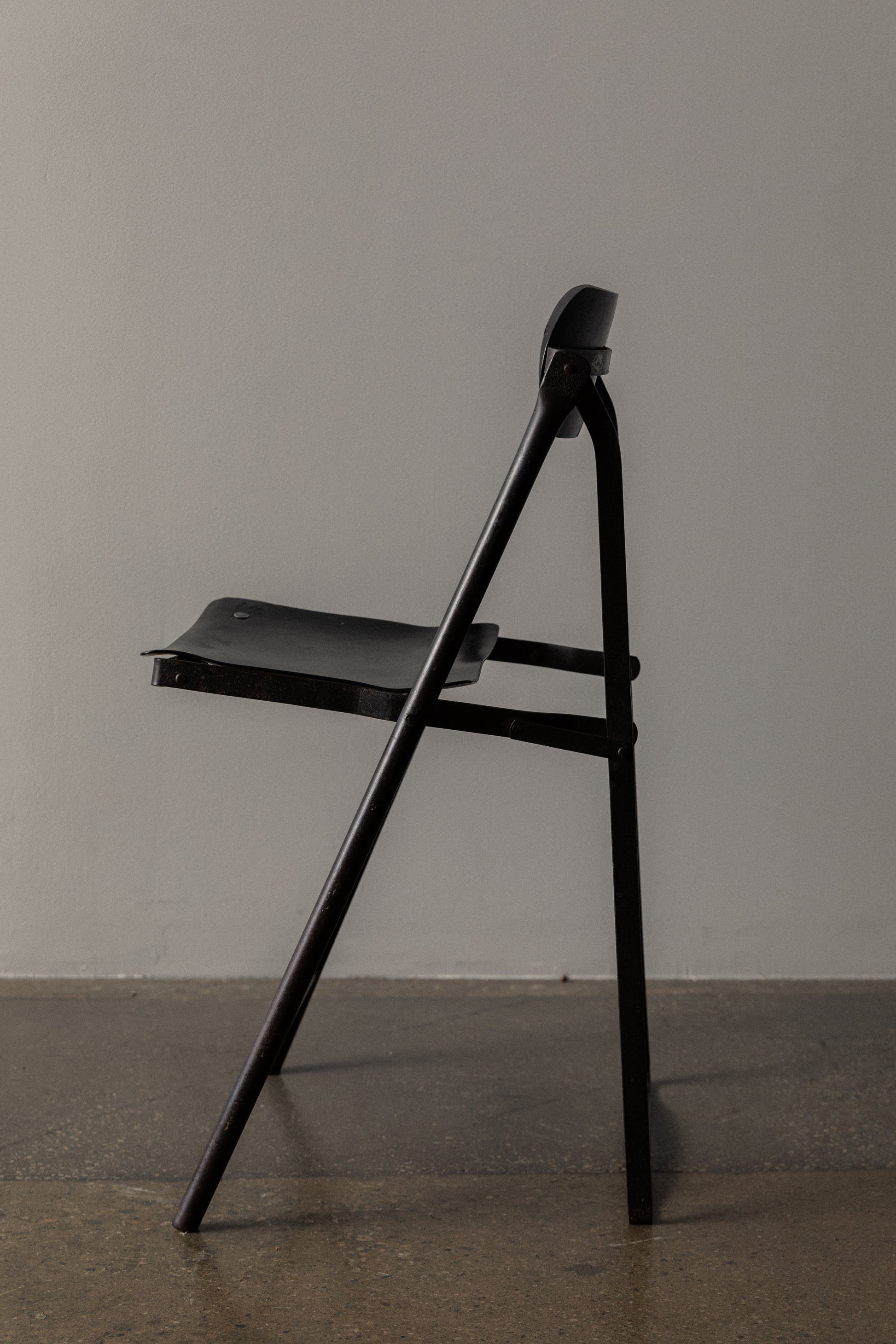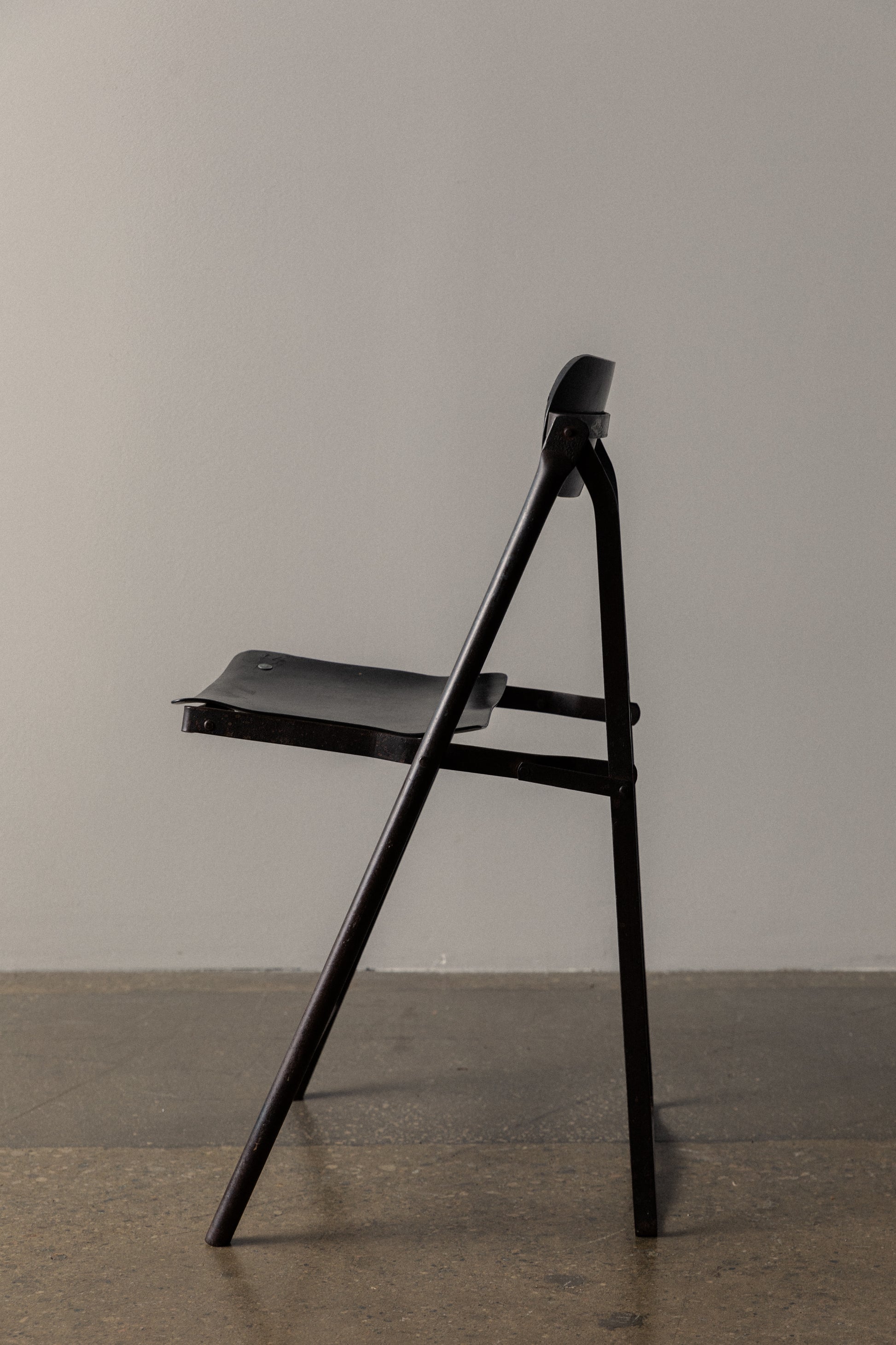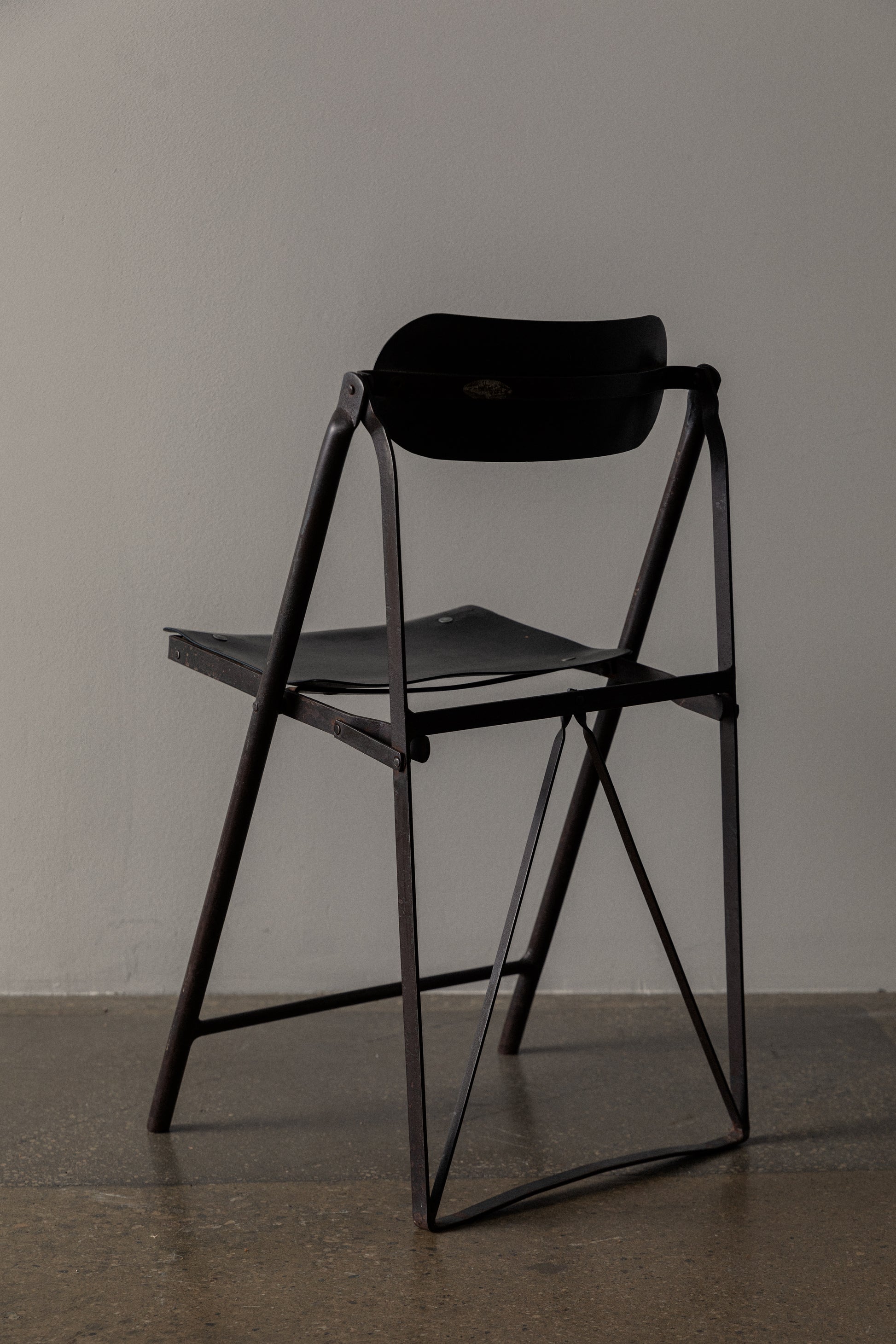 Vintage French Folding Chair in Olive Green Metal